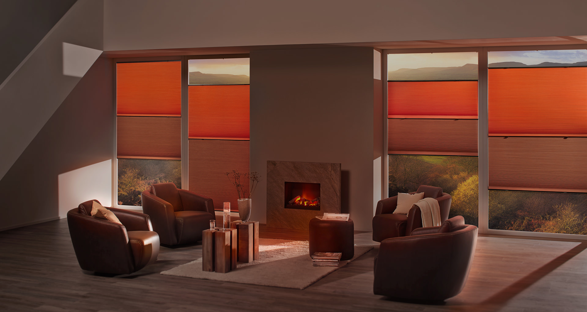 Wer am Schreibtisch produktiv sein will, braucht komfortable Arbeitsbedingungen. Dabei ist das Licht ein wichtiger Faktor für eine produktive Atmosphäre. Mit der Tag-Nacht-Kombination von DUETTE® Wabenplissee kann der Lichteinfall stufen- und mühelos reguliert werden, ganz nach Arbeits- und Tagesform. Die (halb-) transparente Stoffqualität mildert blendendes Sonnenlicht, das bei der Arbeit am PC-Bildschirm störend wirkt. Die abdunkelnde Stoffqualität hält Blicke und Lichter von draußen fern und macht den Arbeitsplatz zur echten Privatzone.